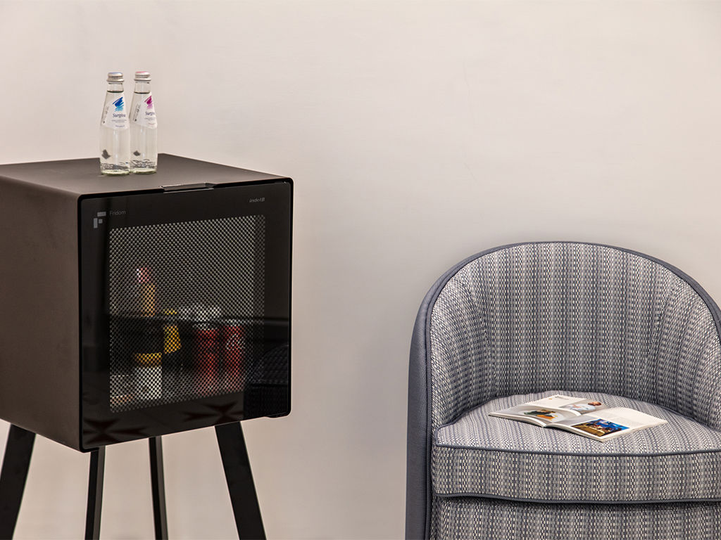 Designed down to the finest detail, this room blends antique architecture with contemporary furnishings and textiles. It includes a double bed, writing desk, armchair, wardrobe, and chest of drawers.